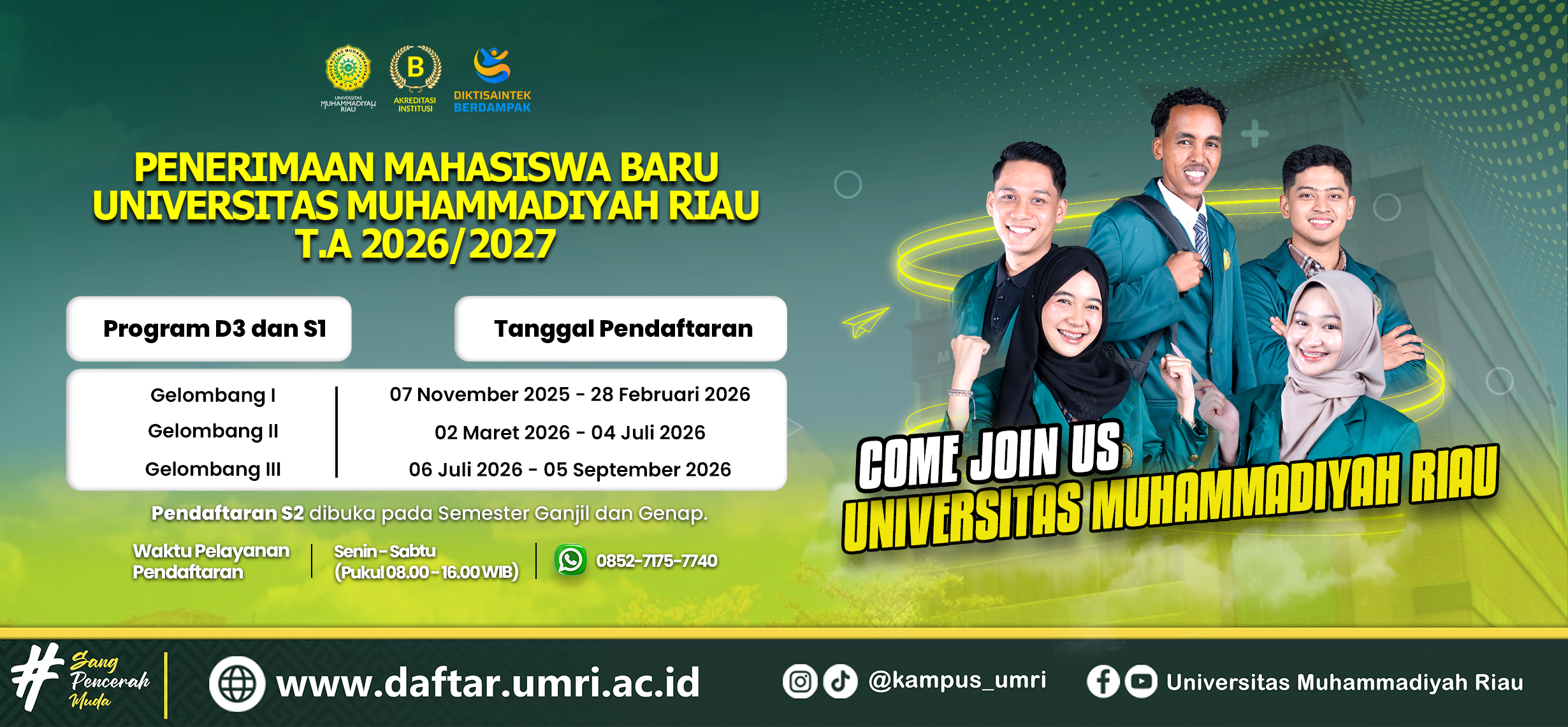 Program studi Fisika Universitas Muhammadiyah Riau merupakan program studi yang berdiri di awal berdirinya Universitas Muhammadiyah Riau. Pendirian Prodi Fisika sejalan dengan usaha pemerintah Riau dalam meningkatkan kualitas sumber daya manusia dan pemenuhan tenaga ahli di bidang ilmu fisika. Prodi Fisika telah terakreditasi ‘Unggul” Lamsama sejak 10 Maret 2026 dengan Surat Keputusan Lamsama No. 058/SK/LAMSAMA/Akred/s/111/2026.